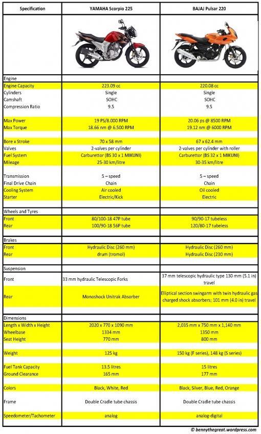 Mau lihat Komparasi Yamaha Scorpio 225cc dengan Bajaj Pulsar 220cc
